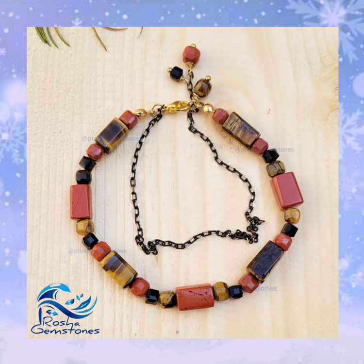 ساخته شده از سنگهای چشم ببر و جاسپر سرخ که به ترتیب سنگهای مربوط به چاکرای خاجی و چاکرای ریشه هستن.