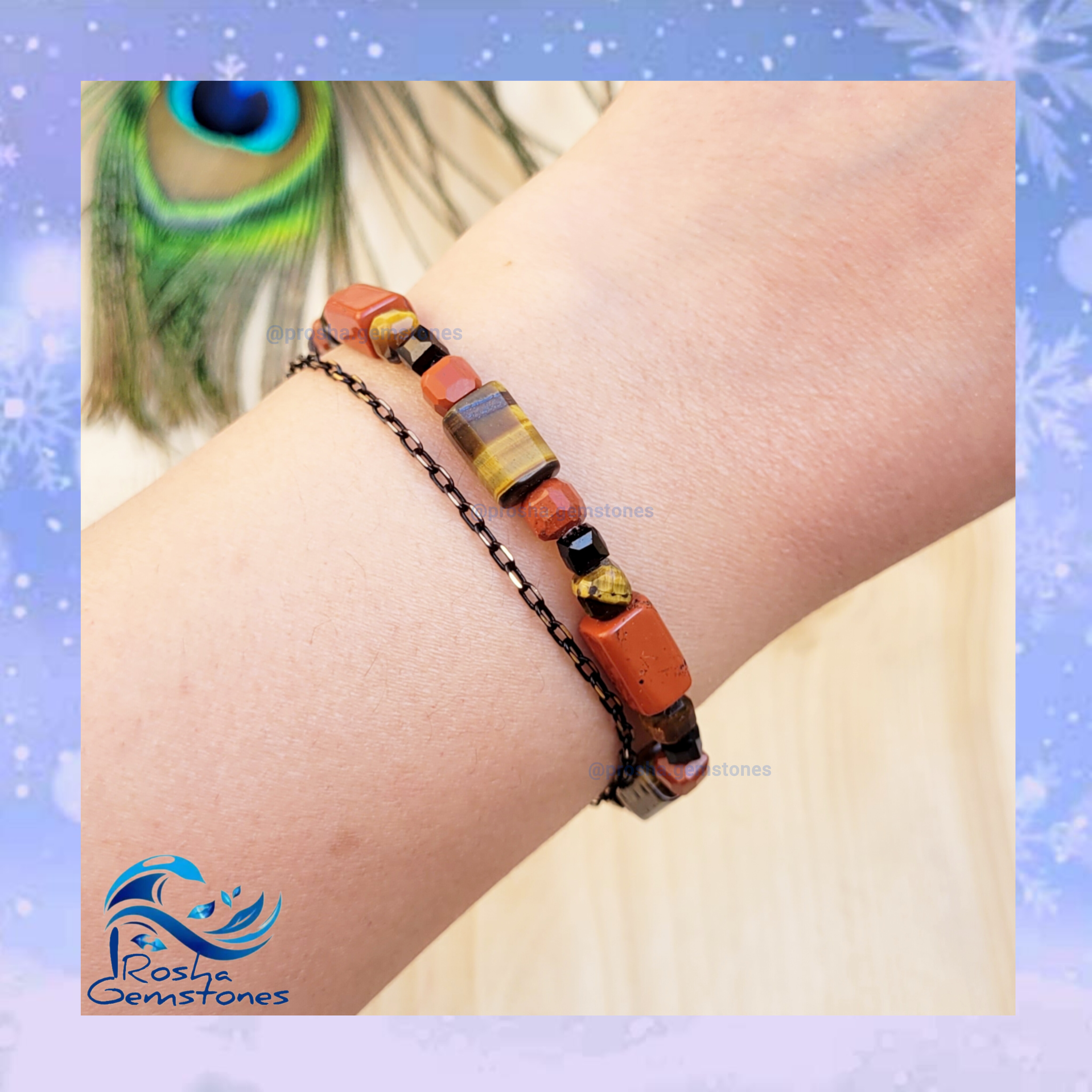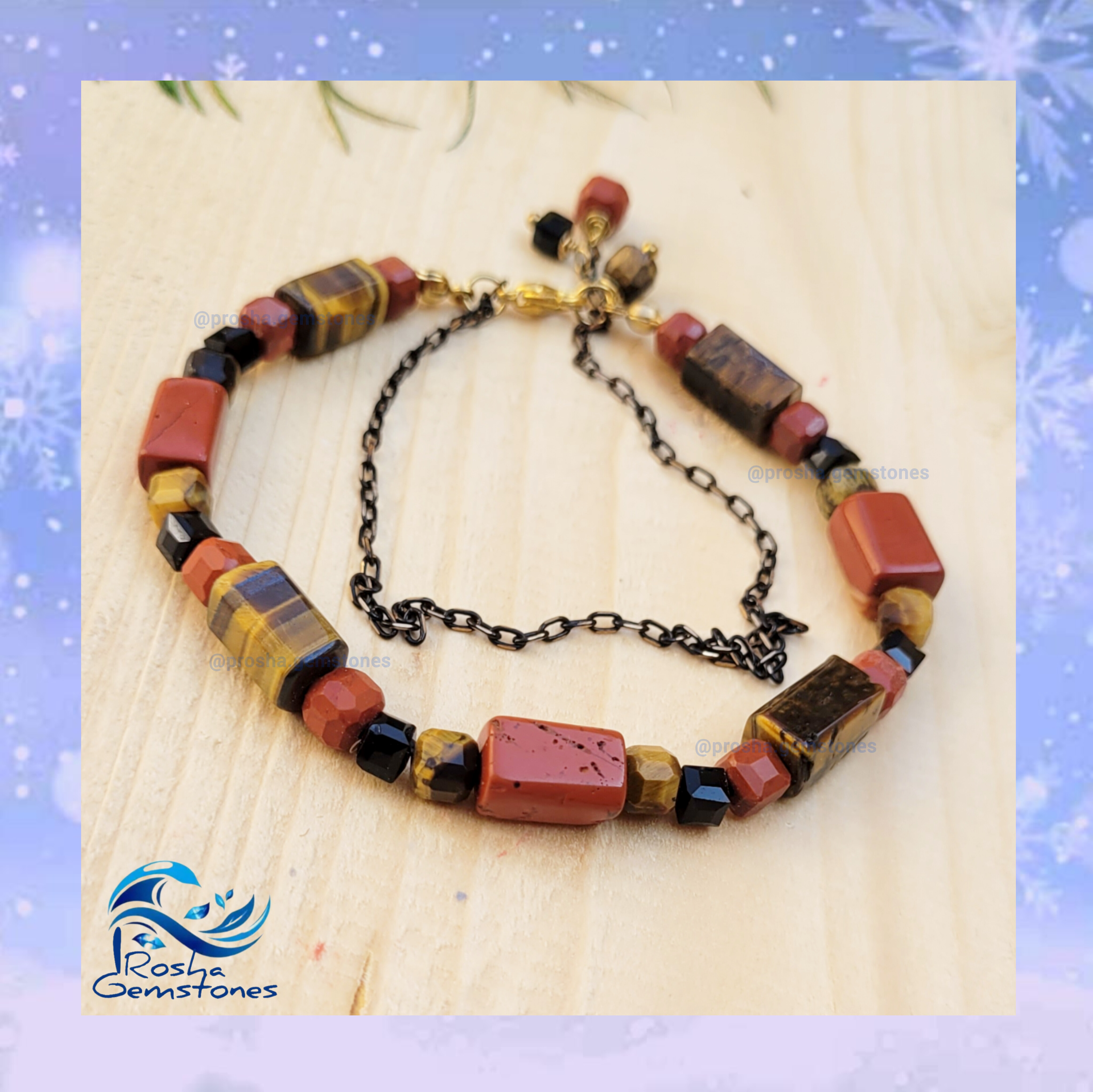 ساخته شده از سنگهای چشم ببر و جاسپر سرخ که به ترتیب سنگهای مربوط به چاکرای خاجی و چاکرای ریشه هستن.