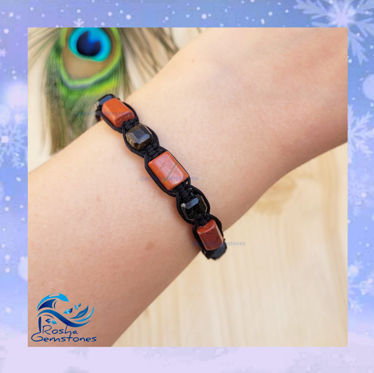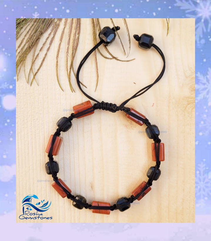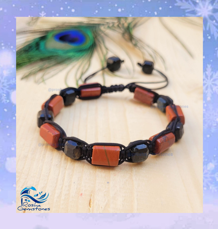 دستبند مردانه جاسپر سرخ و تورمالین مشکی