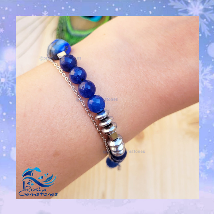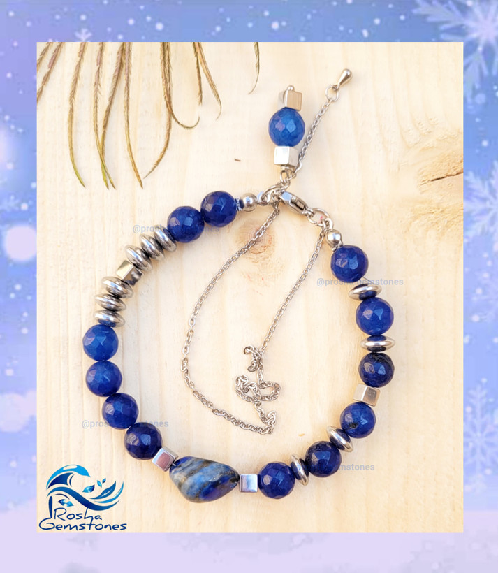 دستبند ترکیبی سنگ لاجورد، جید آبی و حدید