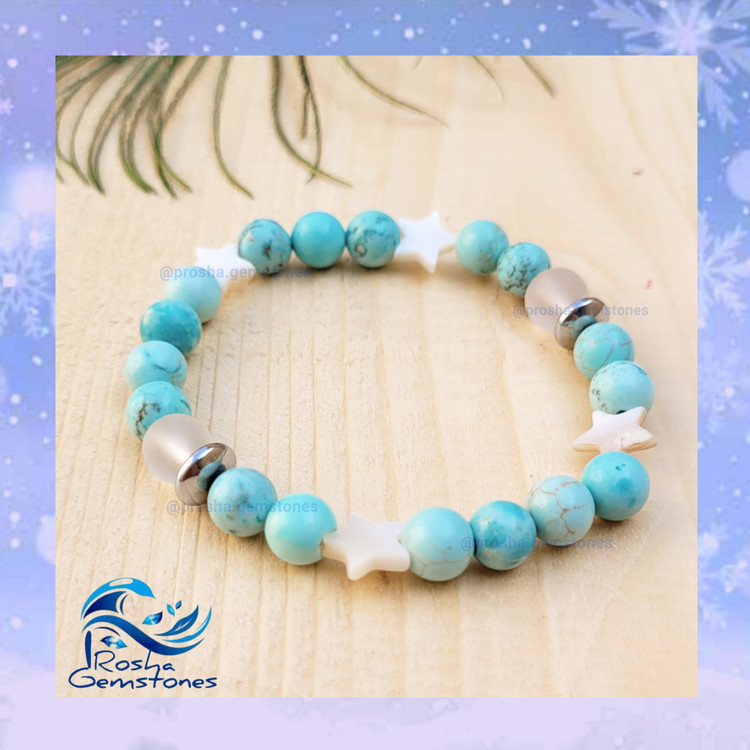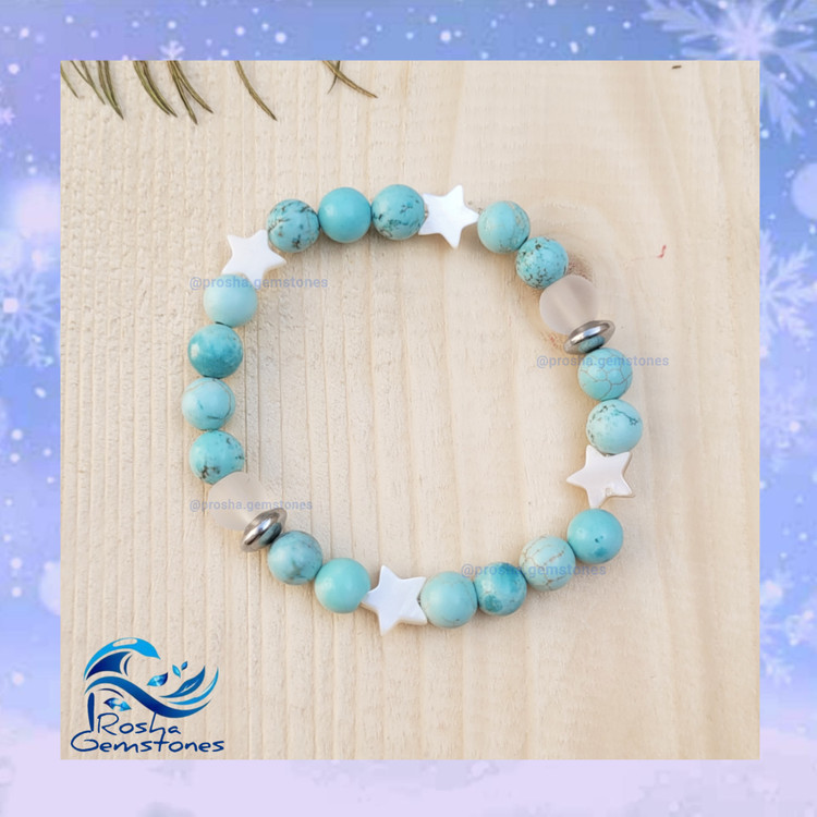 دستبند زنانه تمام فیروزه و صدف طبیعی