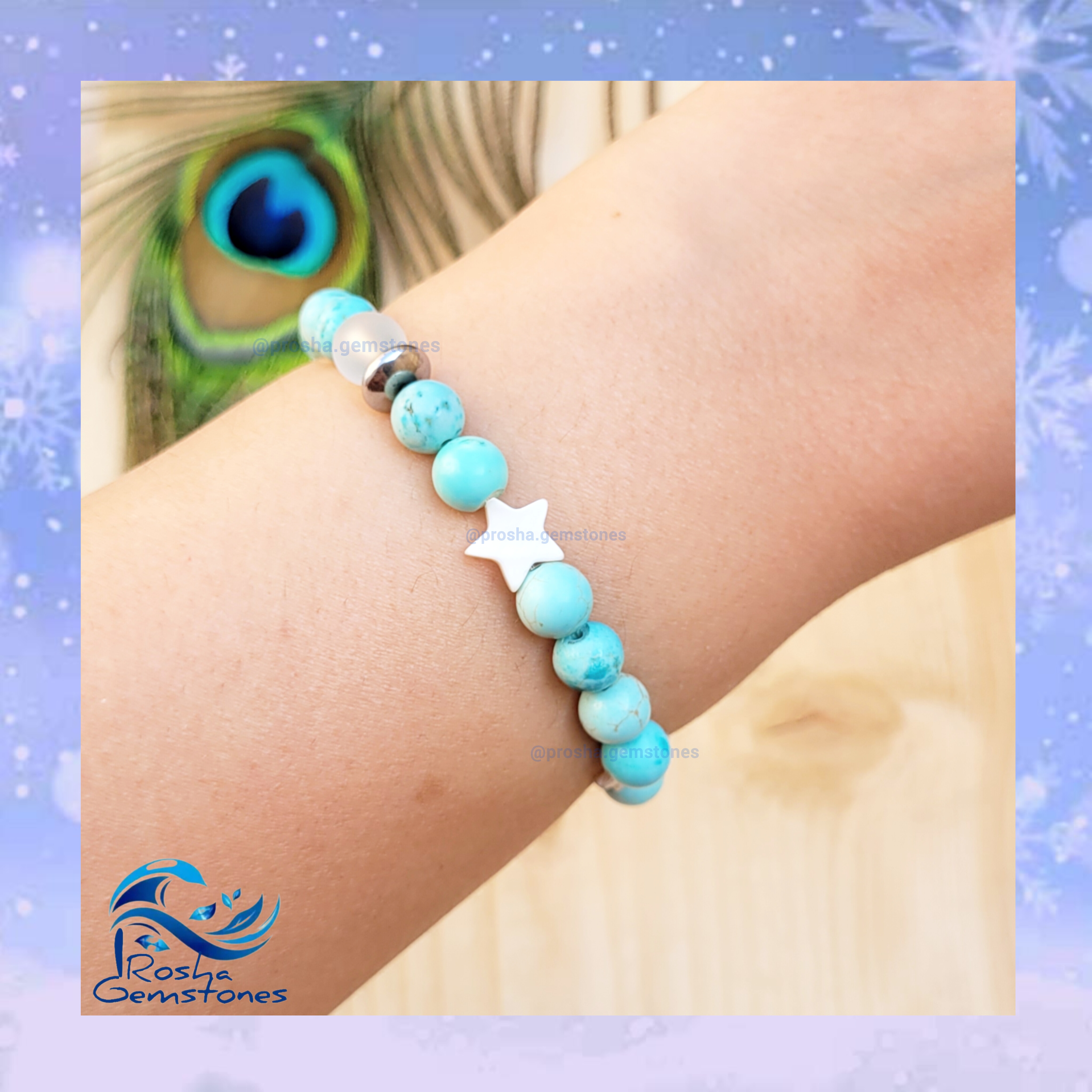 دستبند زنانه تمام فیروزه و صدف طبیعی