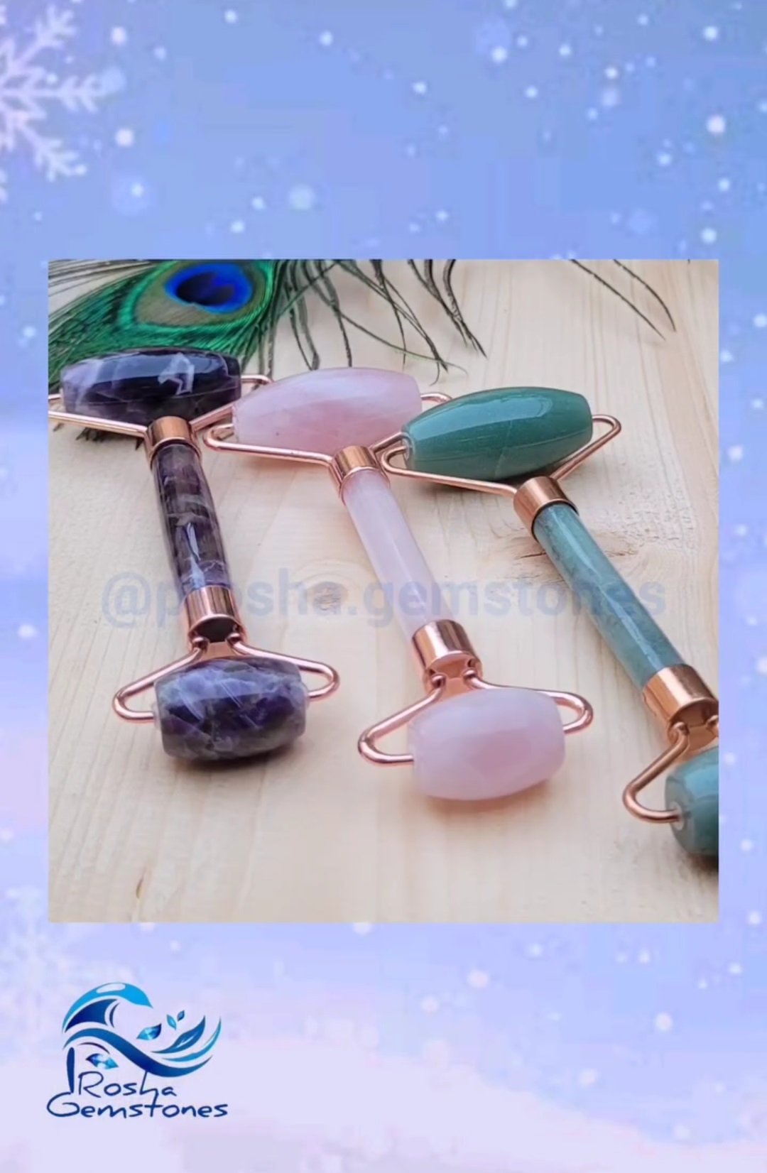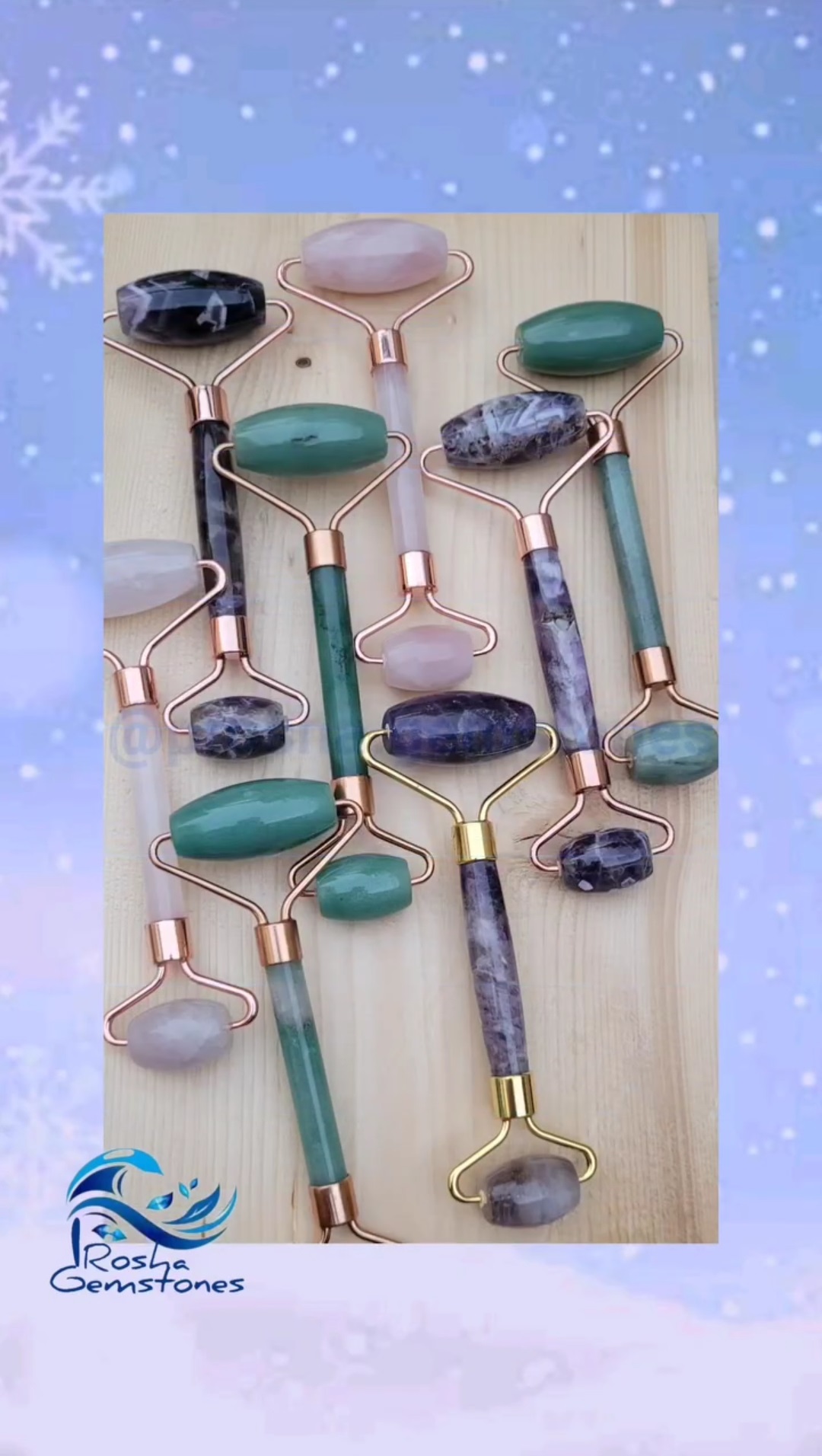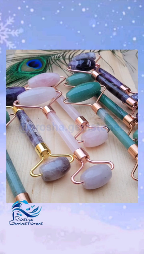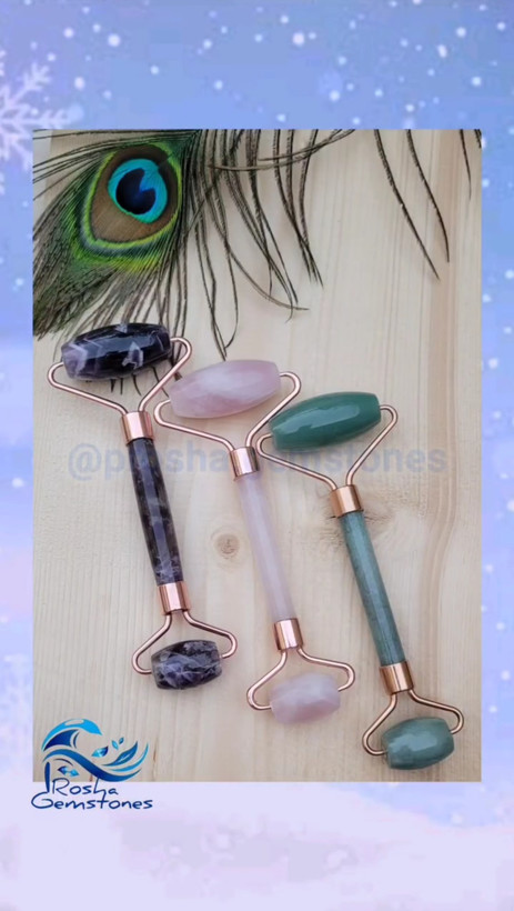 رولر سنگی طبیعی از سنگهای آمیتیست، رزکوارتز، جید سبز