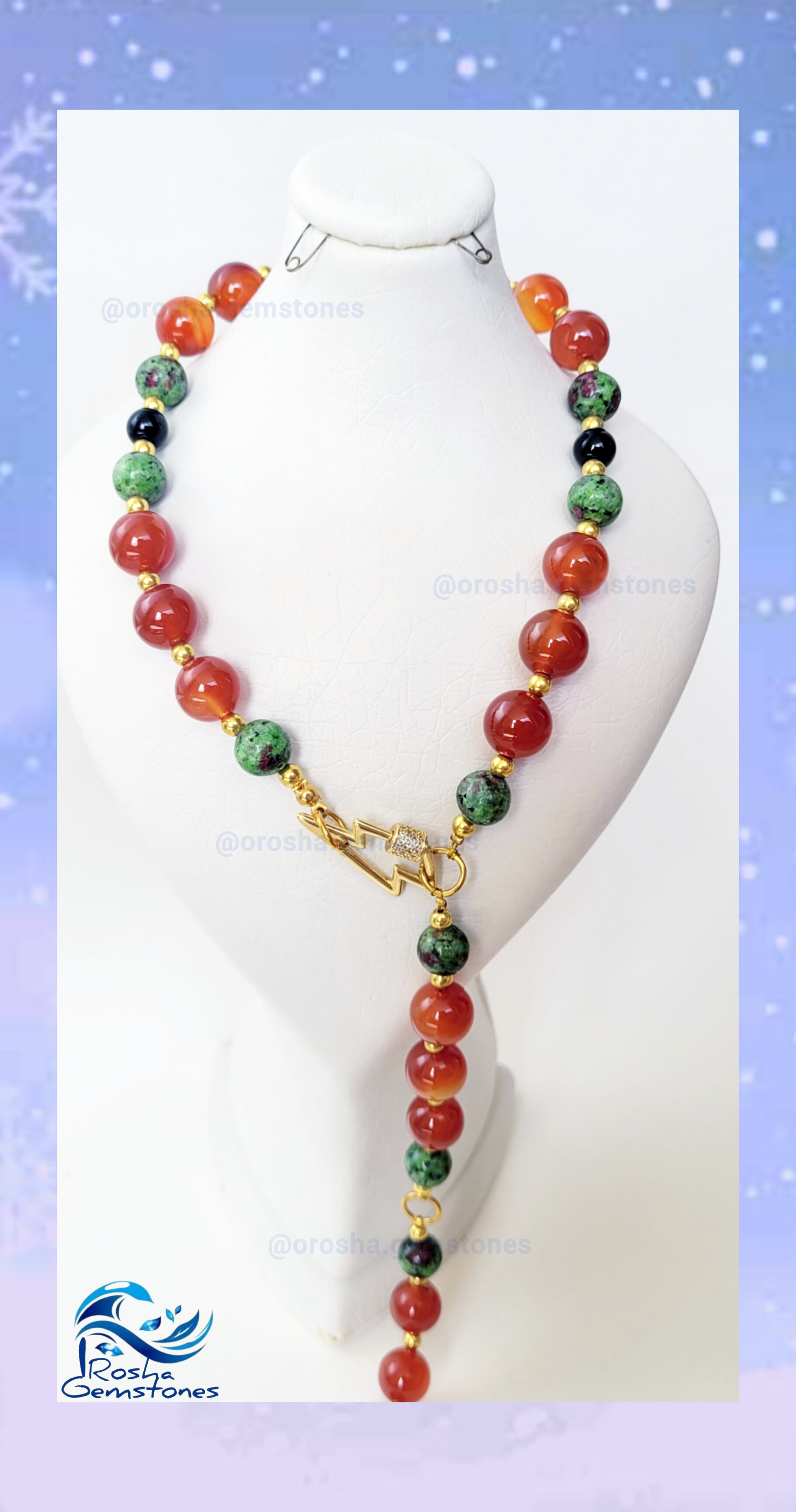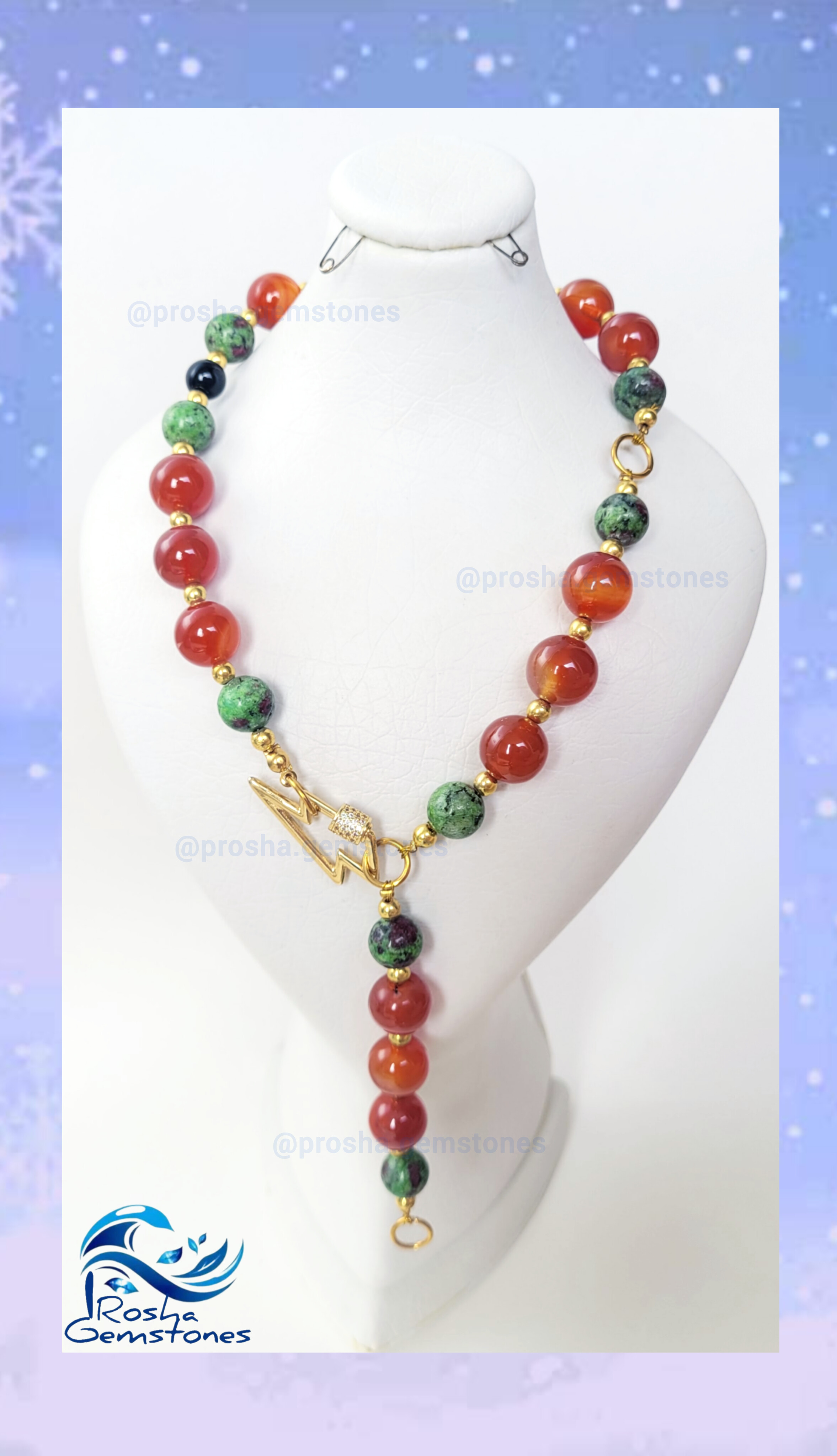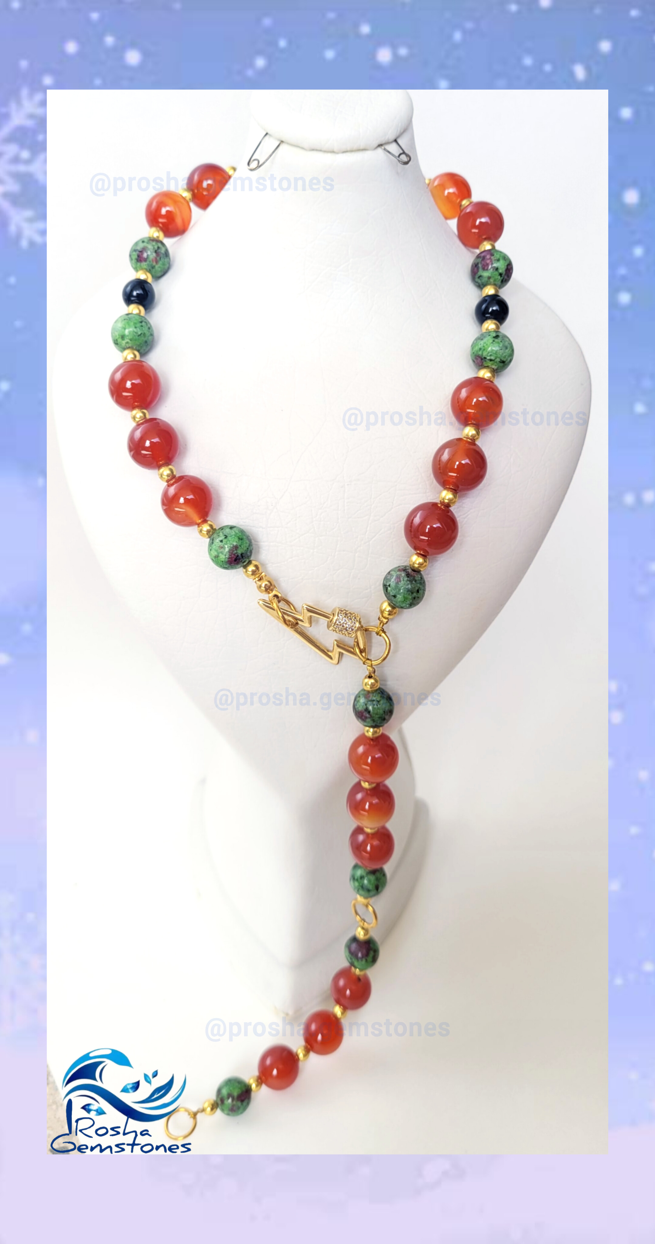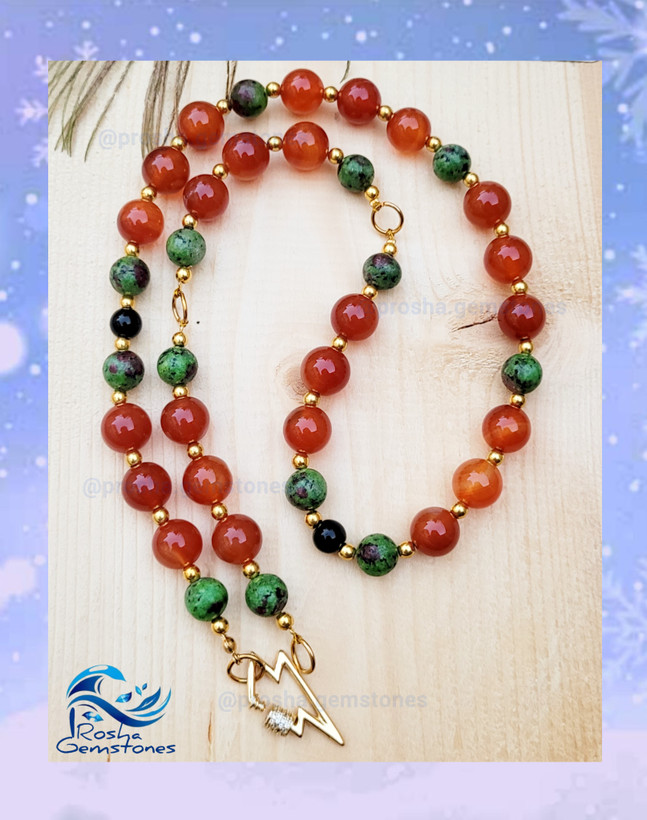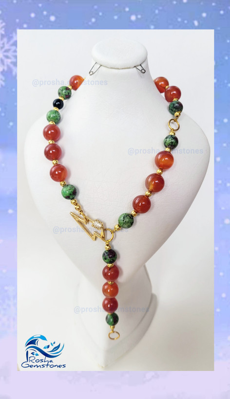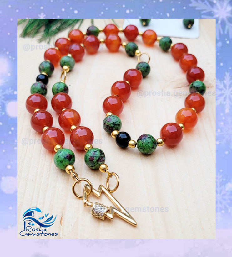 گردنبند عقیق کارنلین سلیمانی و روبی زئوسیت