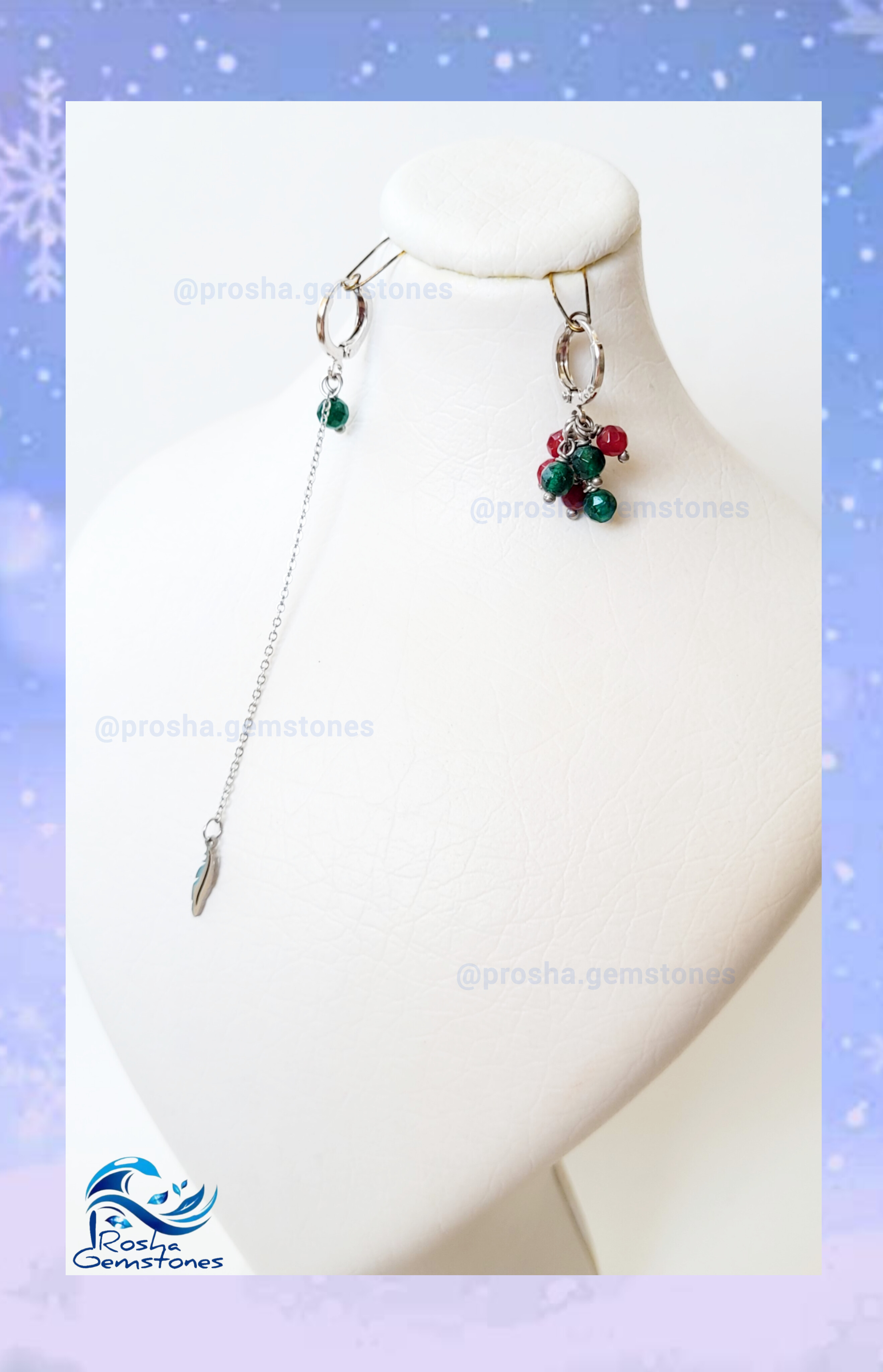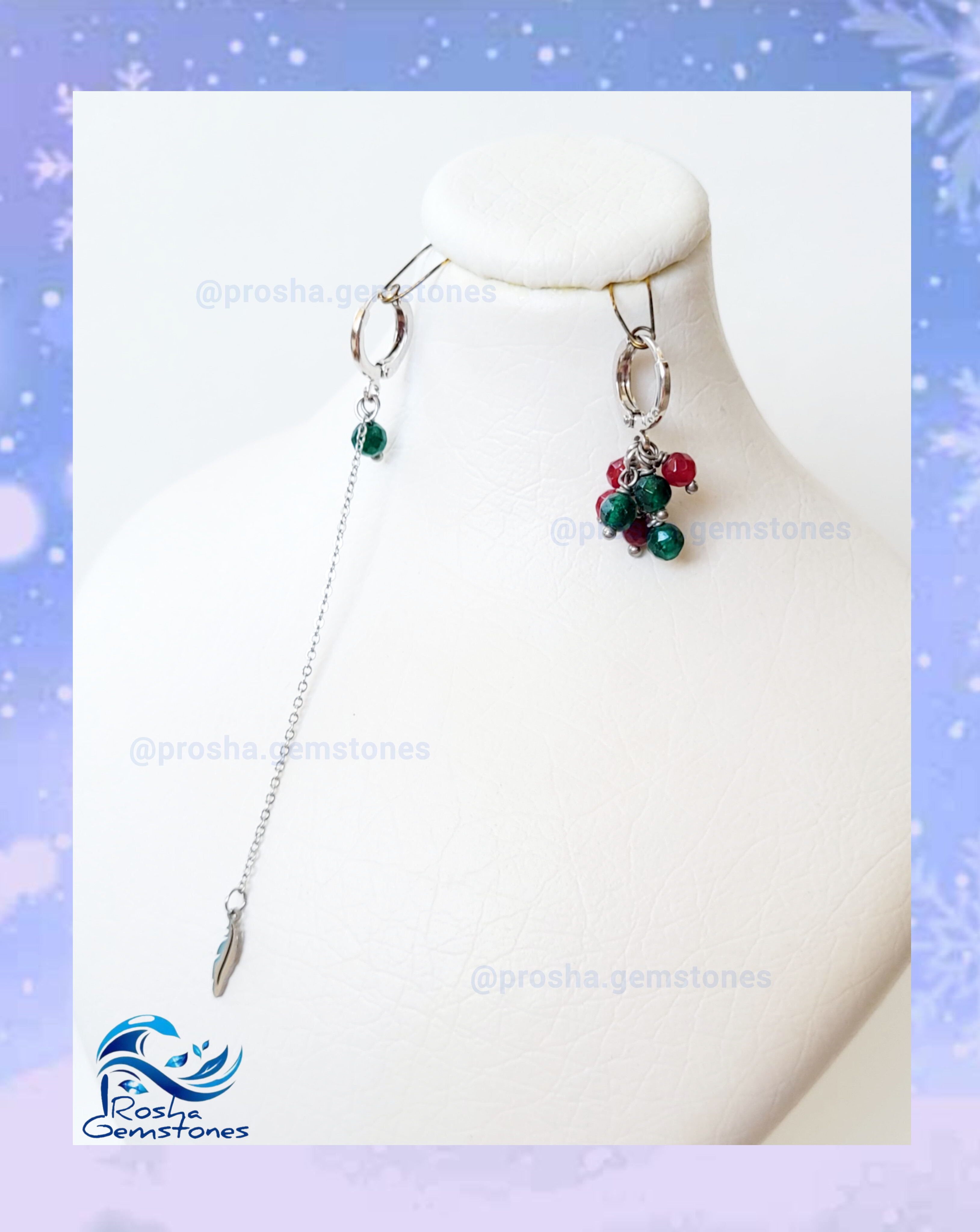 گوشوارهی بسیار ظریف از سنگهای جید سرخ و سبز با پایه گوشواره ، زنجیر و آویز استیل رنگ ثابت. توجه داشته باشید که حلقهی پایه گوشواره سایز کوچکه و برای گوشهای کوچک و لاله گوش ظریف مناسبه. سنگهای جید به کار رفته در این گوشواره، تراشدار هستن و درخشش خیلی جذابی ایجاد میکنن.