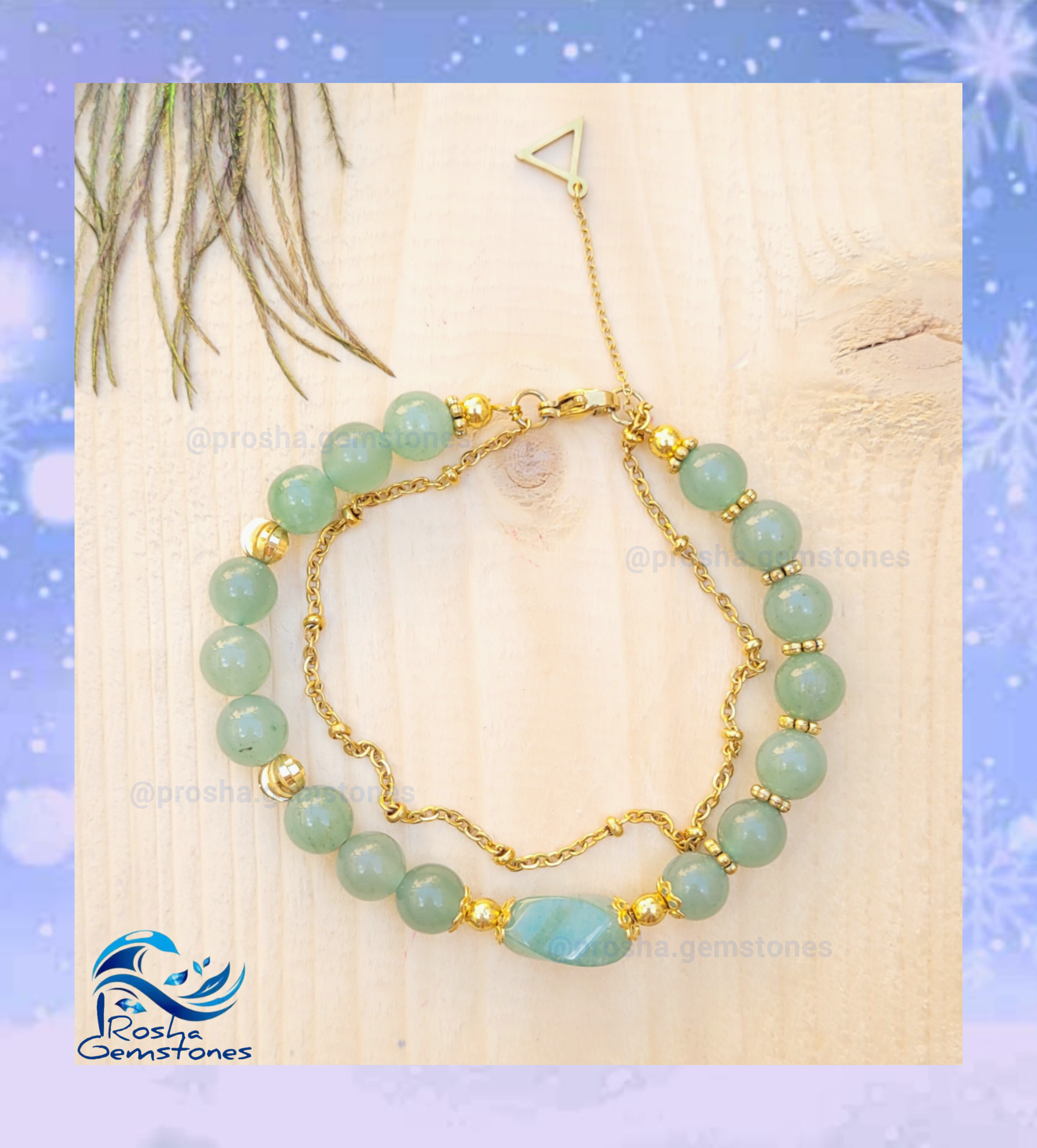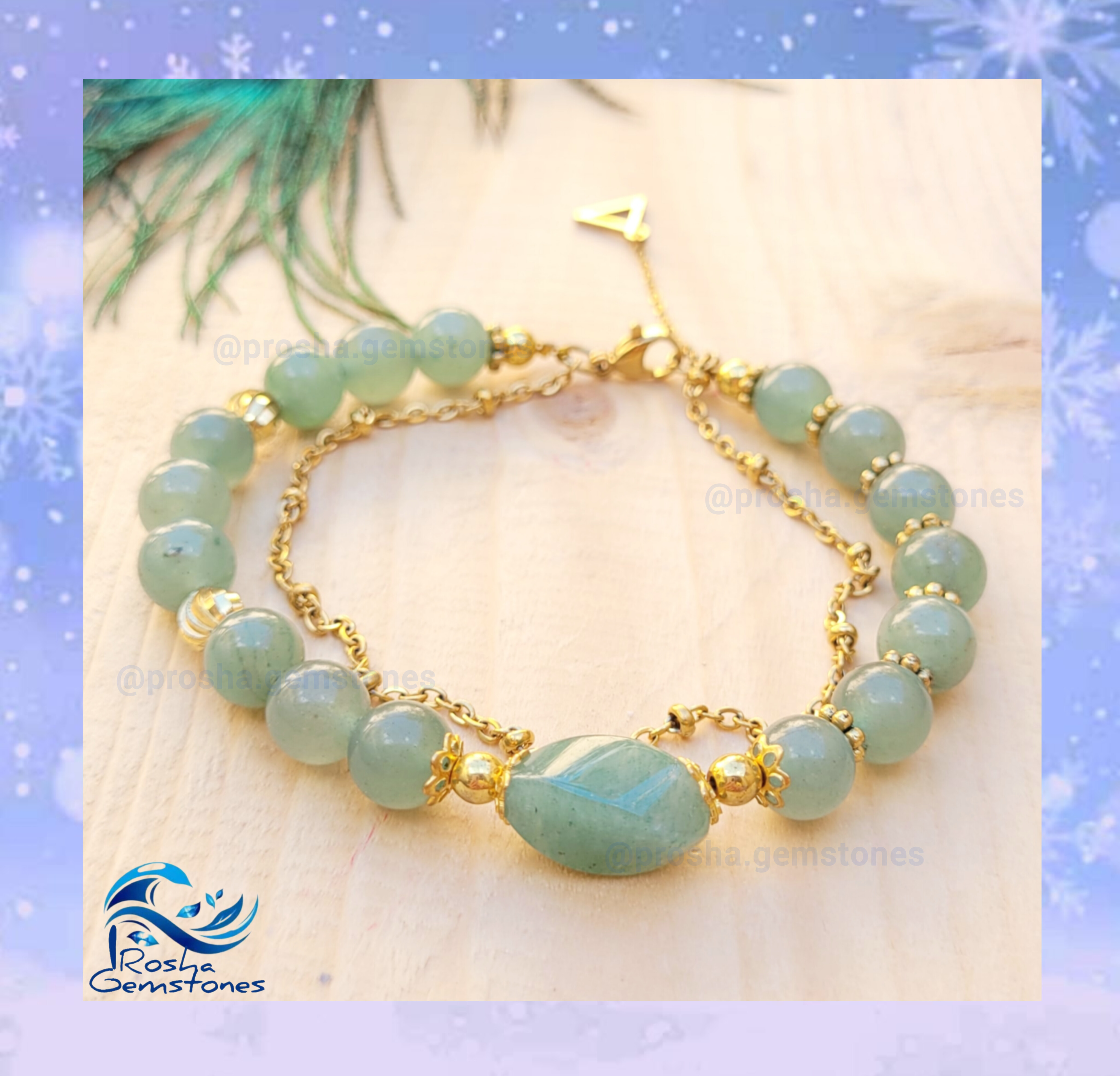 دستبند سنگ یشم آونتورین آونتورین یکی از مهمترین و معروفترین سنگهای تاثیرگذار بر چاکرای قلب و پاکسازی کنندهی این چاکرا ست. عشق و محبت رو جذب میکنه علاقه بین عاشق و معشوق رو بیشتر میکنه دردهای عاطفی رو تسکین میده قلبتون رو شاد و آروم میکنه قلب رو تقویت میکنه